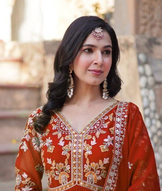Dupatta Artistry: Accompanied by a matching Faux Blooming Georgette dupatta, bordered with a Designer Sequins Multi Embroidered Lace Border.