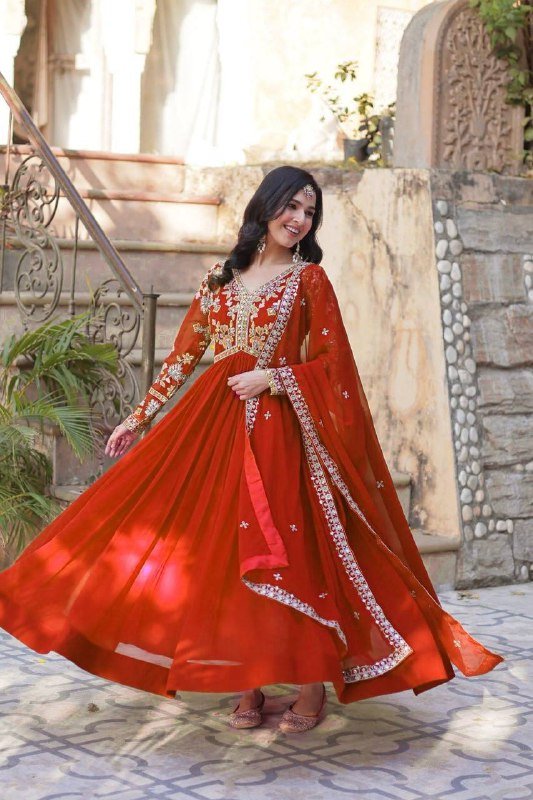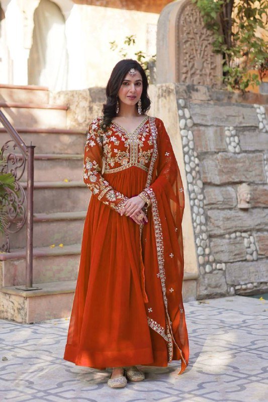 Fabric & Work: Crafted from premium Faux Blooming fabric, embellished with high-quality Sequins-Multi and Zari Embroidered Work on the bodice and full sleeves.