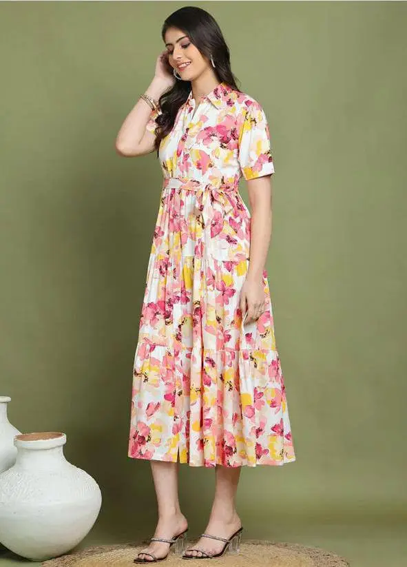 Elevate your everyday style with our Chandramukhi Kurti, a perfect blend of traditional comfort and modern Western silhouettes. This vibrant, multi-tiered midi dress is designed to bring a fresh, feminine energy to your wardrobe.