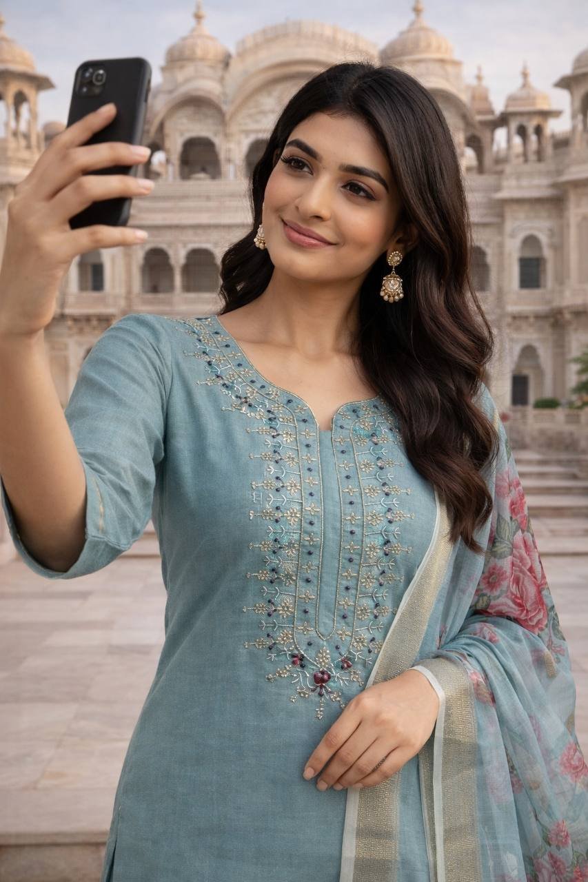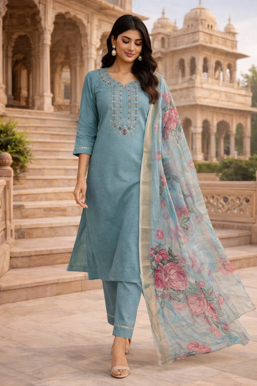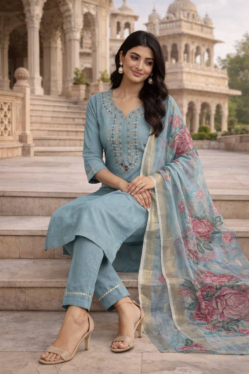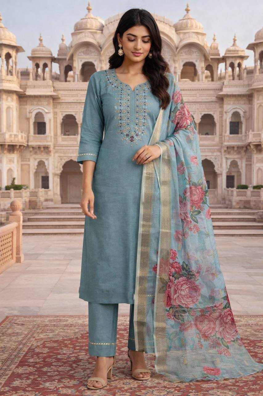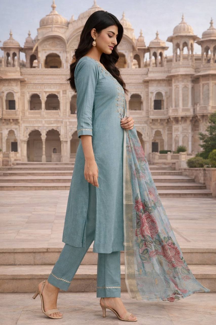 Inclusive: 3-piece set including Top, Bottom, and Dupatta.