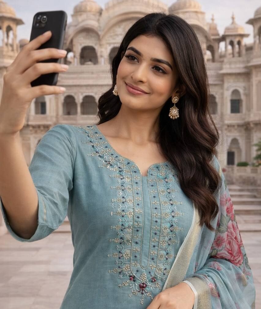 Introduce a touch of showroom luxury to your wardrobe with the Variyali set. This premium, three-piece ensemble is a “Brand Showroom Piece” meticulously crafted for grand festivities and elegant celebrations.